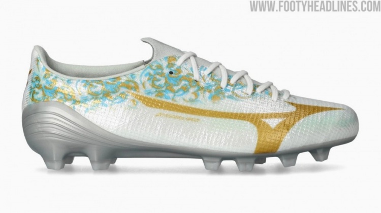 这个专属logo首次亮相于全新发布的美津浓Alpha III菲利克斯专属战靴上,它以醒目的金属质感呈现在两只球鞋的后跟处,与白色鞋底和蓝金相间的球鞋侧面图案形成呼应。